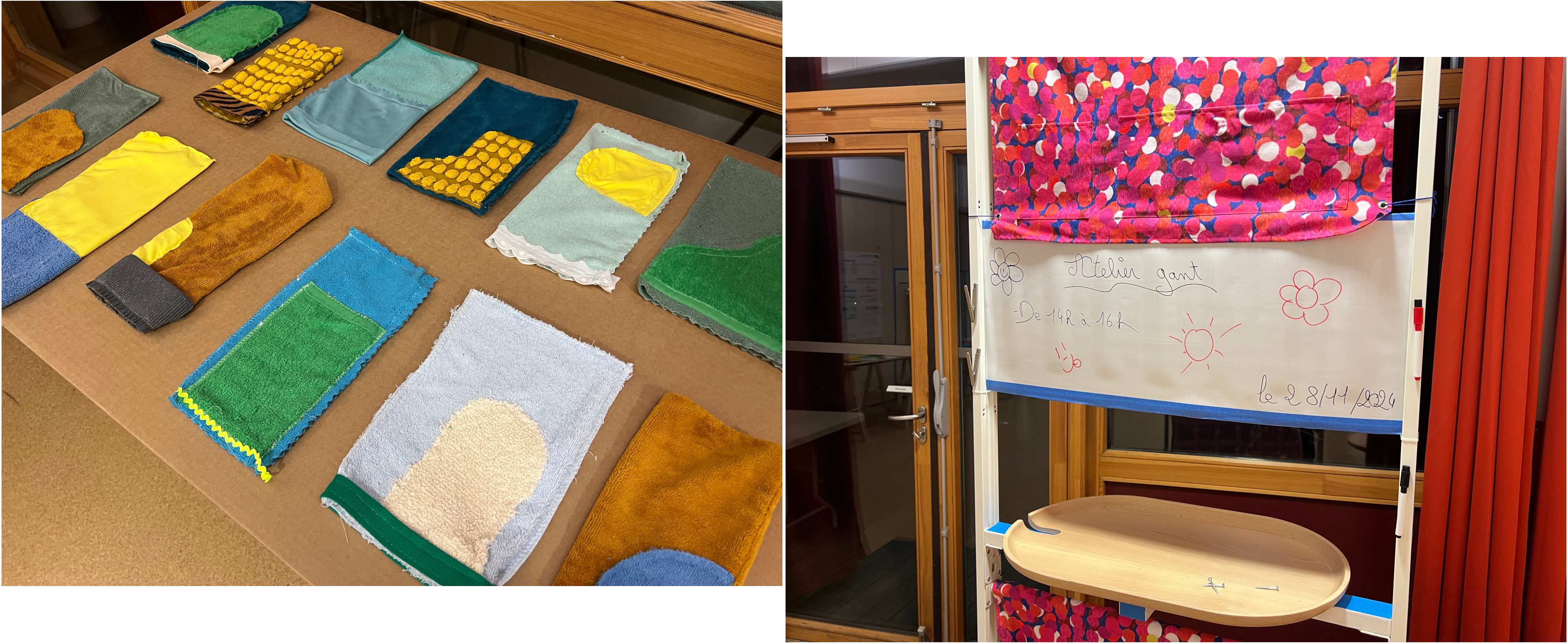 Deux ateliers créatifs autour du bien-être ont été organisés : la fabrication de gants sensoriels et la création de savons. Ces activités, mêlant résidents et professionnels, visent à imaginer et à repenser le soin ensemble.